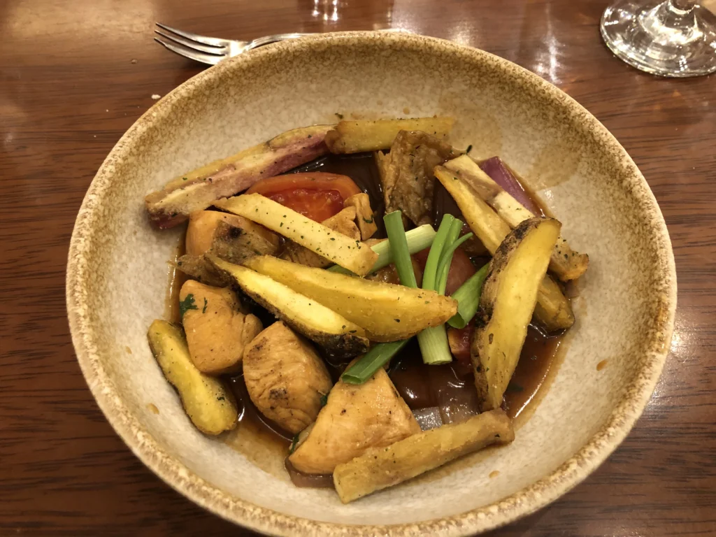 トマトは薄味で、チキンはロモサルタードと似た味付けでした。