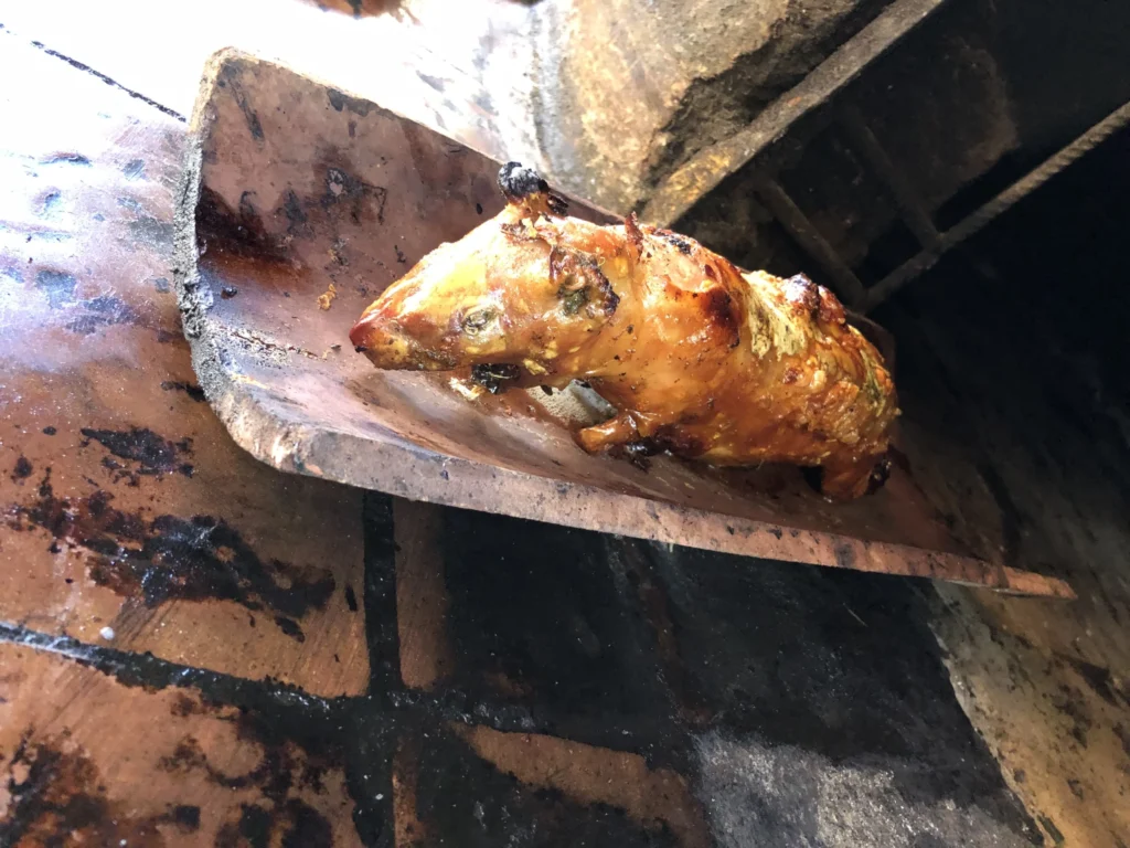 下の写真のクイは、私たちが寄ったレストランの窯で焼かれていたものです。